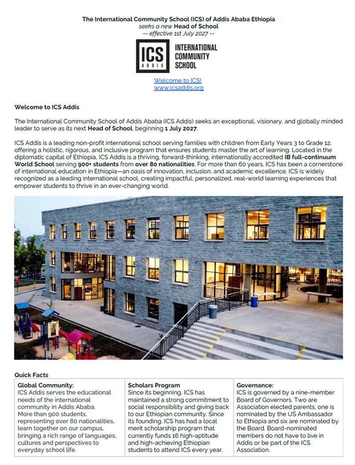 Head of School at International Community School of Addis Ababa in Ethiopia