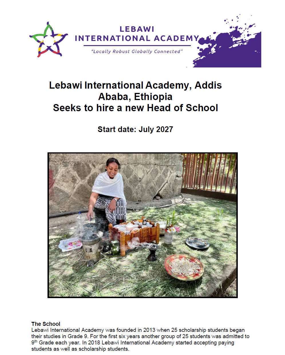 Head of School at Lebawi International Academy in Ethiopia