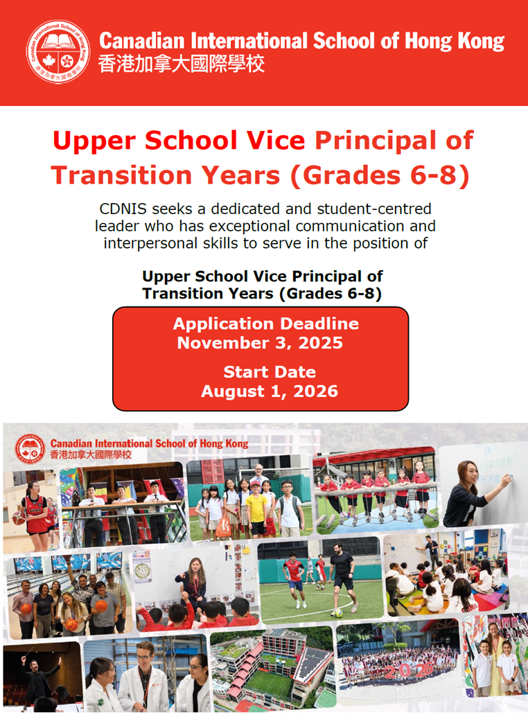 Upper School Vice Principal of Transition Years (Grades 6-8) at Canadian International School of Hong Kong in China/Hong Kong