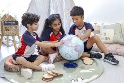 The 13-acre campus features extensive, thoughtfully designed facilities. Low-rise buildings are set among green spaces, shaded trees, and covered walkways. More than 85 fully equipped classrooms support teaching and learning across all divisions, including 11 science laboratories, a food science laboratory, a robotics lab, four art rooms, three drama rooms, four music rooms, two exam halls, and three libraries. All Primary School classrooms are equipped with smart interactive whiteboard technology and wireless network access.